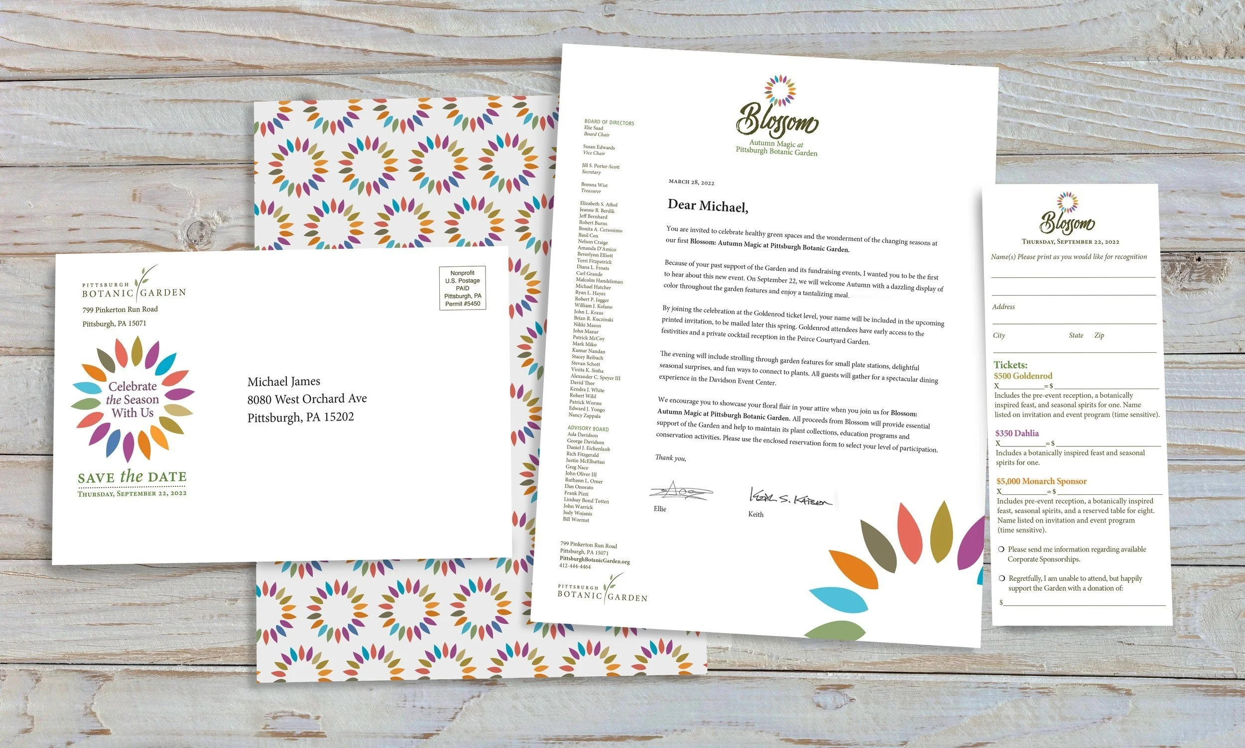 Donations are key to helping the Garden flourish. Above: Two spring appeal mailer.s
